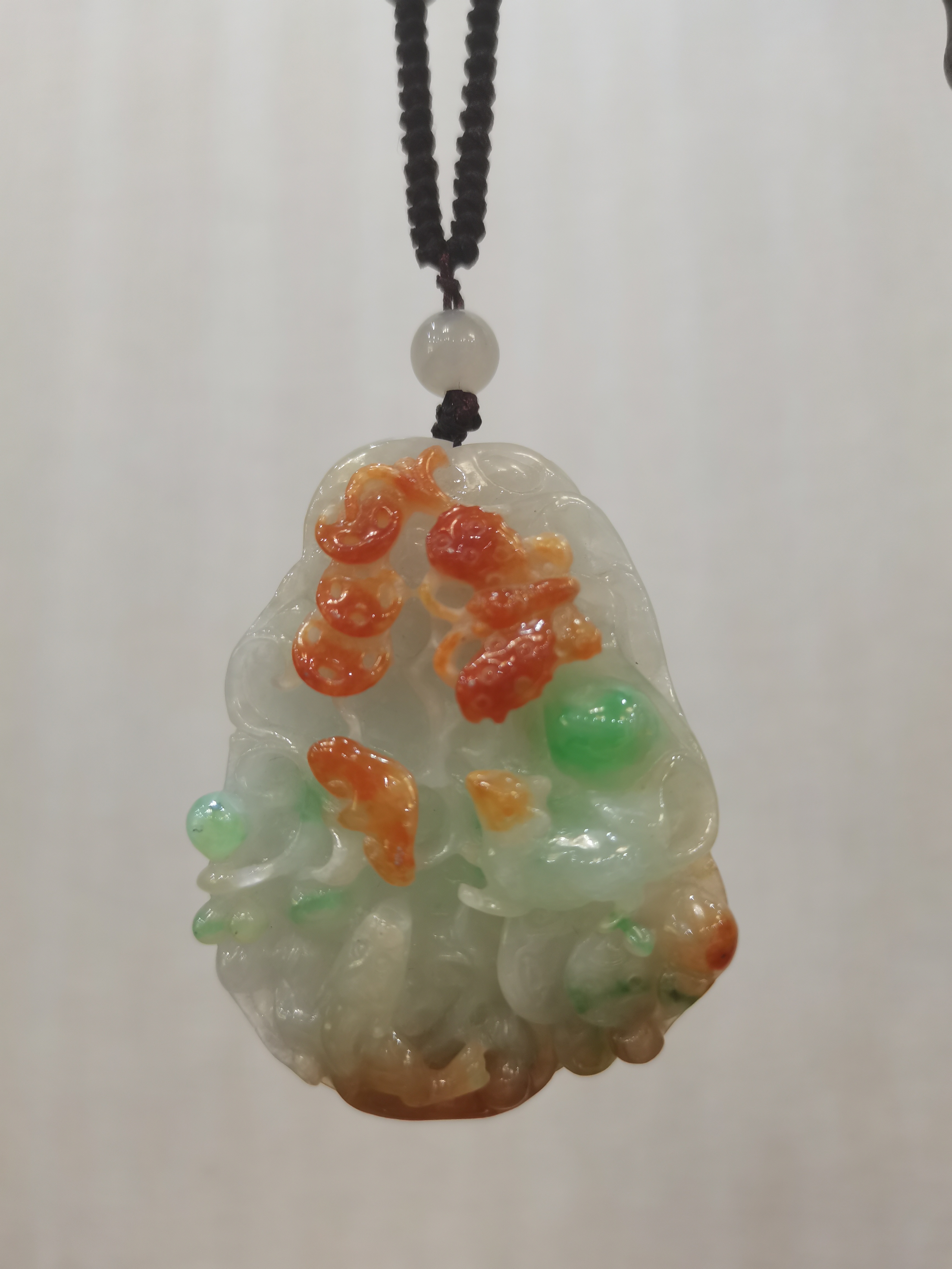 物以稀為貴, 自古以來三色翡翠都是一款難求,可謂稀世珍寶!紅,紅的亮麗,黃,黃得明艷;綠,綠得純粹!配以柔美的灰綠底色,古樸中流露出婉約、流露出經(jīng)典!作品以淺浮雕的嫻熟技法精雕而成,別具匠心的創(chuàng)意,更是惟妙惟肖。是物與情、物與心的完美結(jié)合!如此稀有珍貴的作品,適合佩戴收藏和投資。
