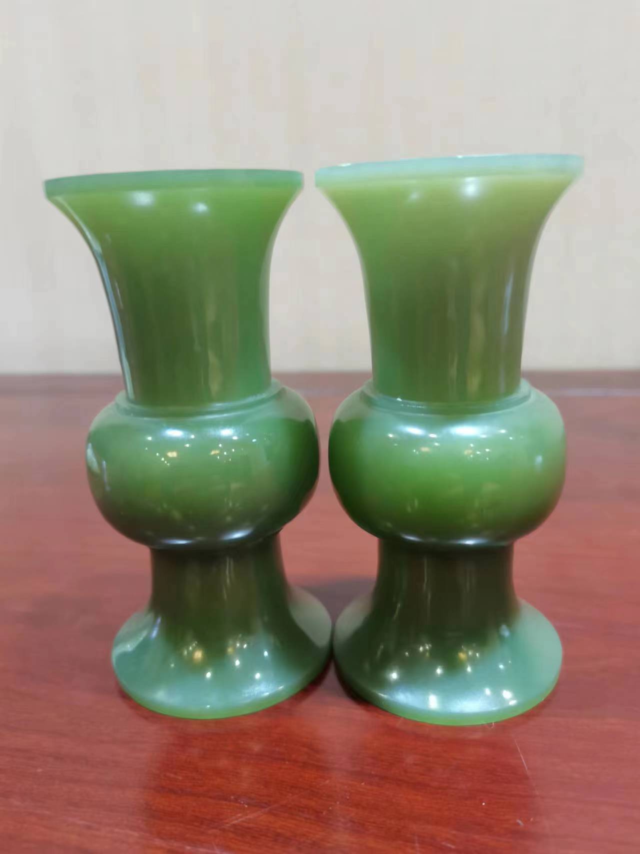 此款碧玉瓶質地細膩縝密,毫無雜質,市場上難得一見的老礦料中,極為稀缺,碧色透亮,器型優美,手感油潤,上手舒適,精細的工藝,玉料完整無暇,乃集賞、玩、藏、傳世之極品。
