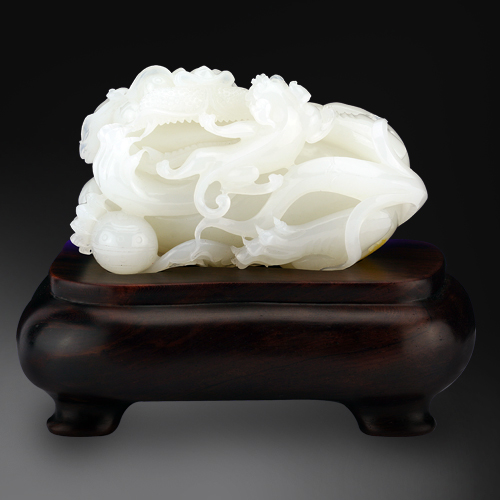 玉質(zhì)晶瑩細膩,柔媚亮澤。款型秀氣典雅,獅子身形圓胖,闊嘴寬鼻,懷抱繡球,姿態(tài)婉轉(zhuǎn)可愛,雕琢利落,形象生動。獅子,表示勇敢,兩個獅子寓意事事如意,一大一小獅子寓意太師少師,意即位高權(quán)重。